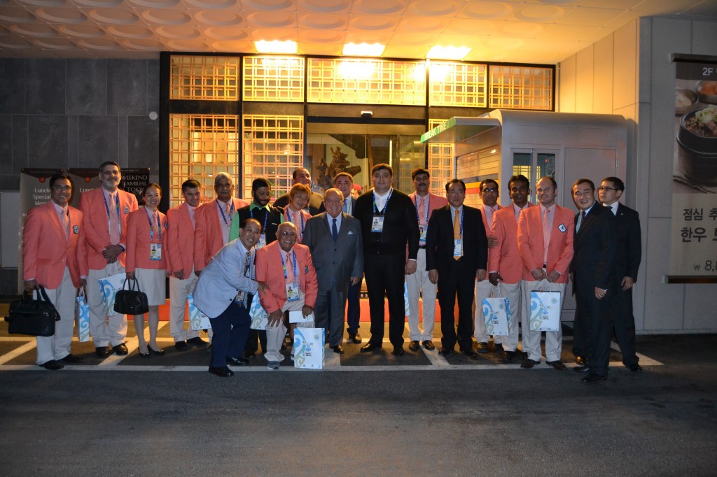 Члены оргкомитета IWF Чемпионата Мира по пауэрлифтингу 2014 посетили семнадцатые Азиатские Игры в Инчхоне, Корея.