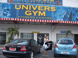 Через пару дней, после очередной экскурсии, мы с сестренкой наткнулись на такую себе статуэтку, юморного характера. Почти прямо посреди тротуара, в полный рост стоял ужасно перекаченный билдер, на шее которого висела вывеска "Univers Gym". Пройдя в сторону, куда показывала вывеска, я увидел большой двухэтажный фитнеcс центр. Тут я не выдержал и решил зайти.